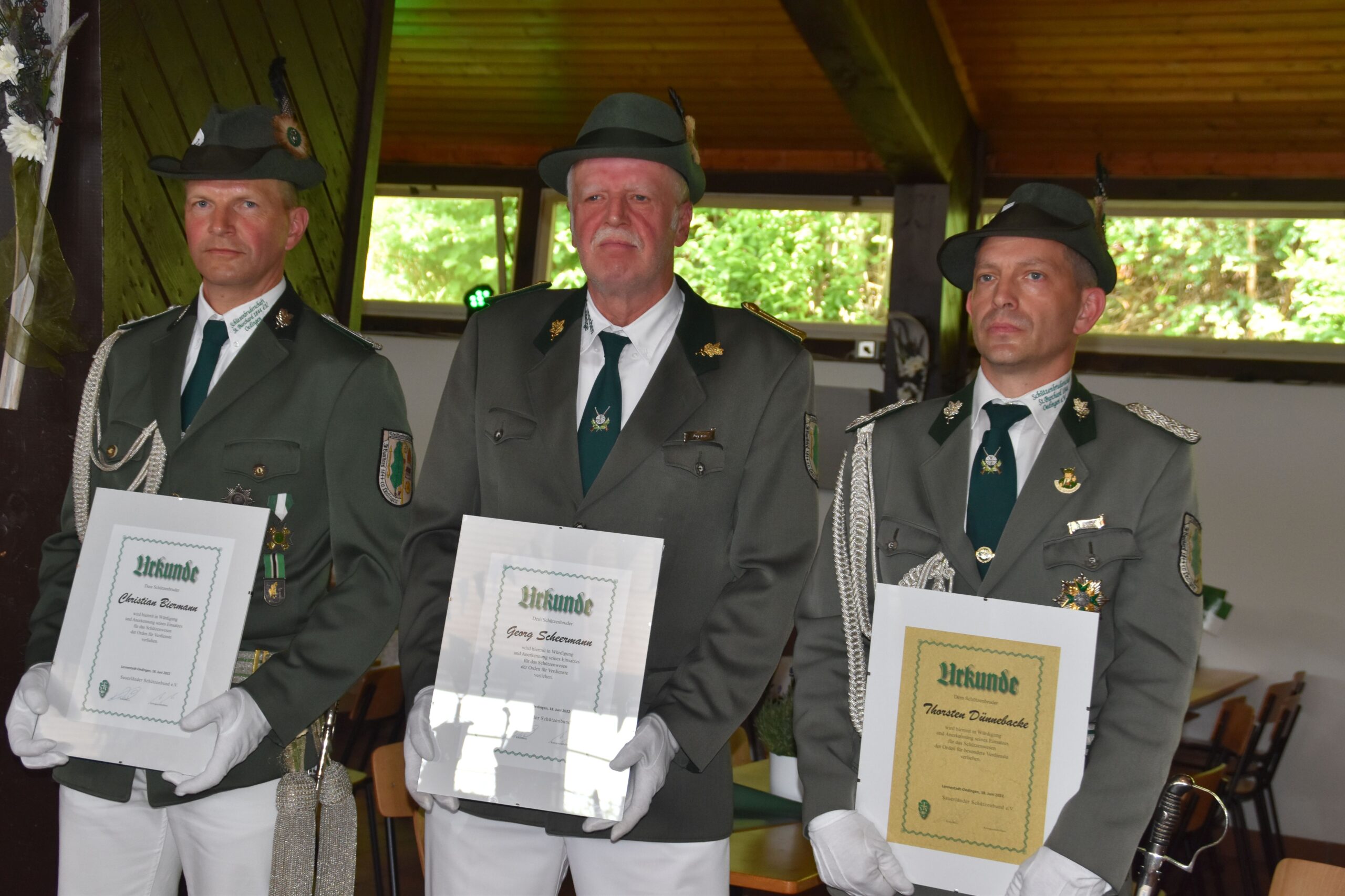 Während des Schützenfestes konnten noch drei weitere Vorstandsmitglieder mit dem Orden für Verdienste und besondere Verdienste geehrt werden.